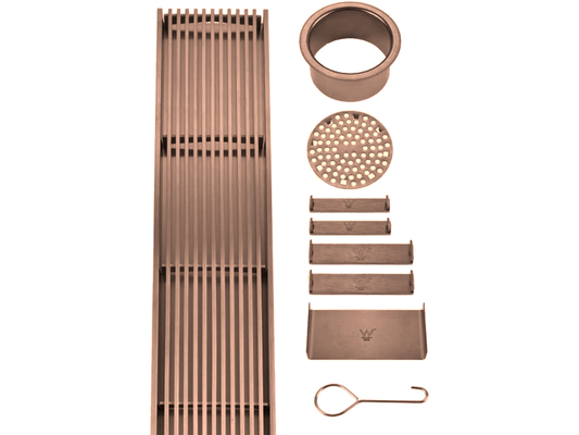 Custom SS316 Tile Insert Linear Floor Grate Brushed Copper VII